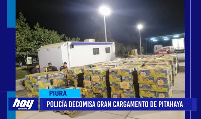 Personal de la Policía Nacional de la I macrorregión Policial de Piura, en un operativo coordinado entre personal de inteligencia y agentes de aduanas, lograron intervenir a unos sujetos que realizaban el transbordo de una gran cantidad de fruta pitahaya.