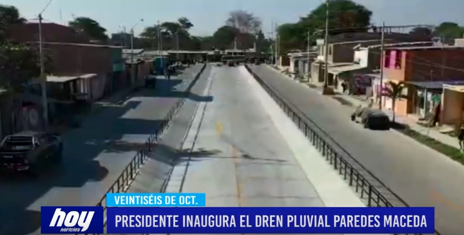 El presidente de la República quien visitó Sullana y Piura, estuvo presente para la inauguración de la obra del dren «Paredes Maceda» en el distrito de Veintiséis de Octubre.