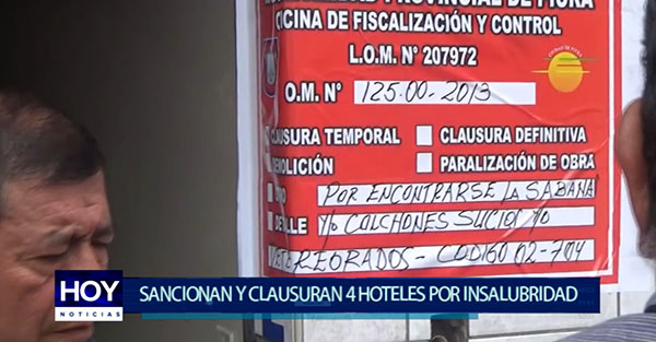 Clausuran hoteles en el centro de Piura. Personal de Fiscalización del Municipio de Piura encontró colchones, sabanas y almohadas insalubres decomisando los enseres