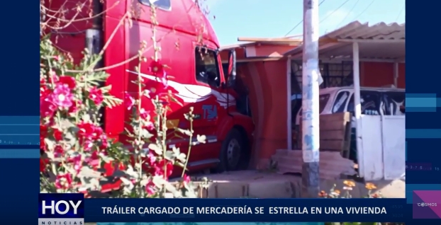 El chófer de un pesado tráiler cargado de mercadería, se salió de control al descender por la doble vía hacia el centro de la ciudad, incrustándose en una vivienda en el asentamiento humano nuevo San Juan. Esto sucedió en la provincia de Talara.