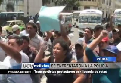 Inicio Noticias Nacionales Piura: Transportistas protestaron por licencia de rutas NoticiasNacionalesPiura Piura: Transportistas protestaron por licencia de rutas Por Tv Cosmos - 19/09/2014 548 0 FacebookTwitterPinterestWhatsApp En Piura, transportistas de una empresa se enfrentaron a la policía durante una protesta contra la municipalidad provincial. TE PUEDE INTERESAR Si te interesa nuestras noticias, puedes seguir nuestras últimas publicaciones por Facebook, Twitter, y puedes suscribirte aquí a nuestro canal de Cosmos Noticias TUITEA COMENTA Y COMPARTE Tweets by CosmosNoticiasPe Artículos relacionadosMás del autor Congreso premió a ganadores del concurso “Mujeres que Inspiran” PRIN oficializa candidatura presidencial y equipo piurano al Congreso Rospigliosi saluda a los peruanos por Navidad y ratifica compromiso con el país POPULAR CATEGORIESNoticias66232Actualidad51007Trujillo42650Nacionales9348Deportes7303Espectáculos4545 NUEVO CONSEJO DIRECTIVO ASUME LA ASOCIACIÓN NUMISMÁTICA Y FILATÉLICA DE TRUJILLO TV COSMOS - 05/03/2026 0 Congreso premiará este martes a ganadores del Concurso Nacional de Fotografía “Mujeres que Inspiran” TV COSMOS - 03/03/2026 0 Alejandro Sanz presenta el video de ‘Rimowa’ en colaboración con Elena Rose TV COSMOS - 23/02/2026 0 Jaze logra su primer sold out en México y consolida su gira internacional TV COSMOS - 23/02/2026 0 Han pasado más de 20 años y la anemia sigue afectando a más del... TV COSMOS - 19/02/2026 0 - Advertisement -