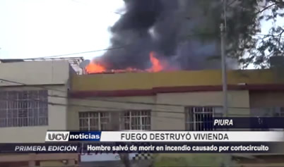 Un hombre salvo de morir dentro de una vivienda donde se produjo un incendio provocado por un corto circuito. El fuego amenazó con propagarse a un establecimiento de combustible.