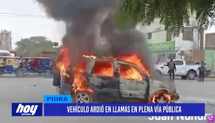 Un vehículo ardió en llamas en plena vía pública, al parecer por un corto circuito, el hecho sucedió el día de hoy en Piura. Hasta el lugar llegaron la unidad de bomberos para apagar las llamas, pero solo quedaba chatarra.