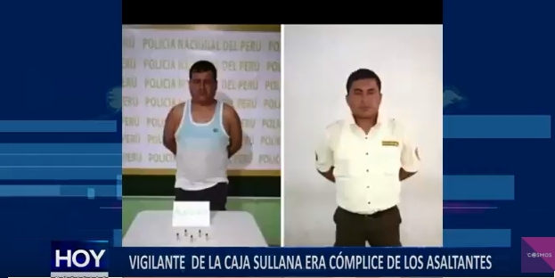 La policía capturó a dos implicados en el robo a la caja Sullana. Se trata del vigilante del establecimiento y otro cómplice, quién se llevó s/ 28,000.