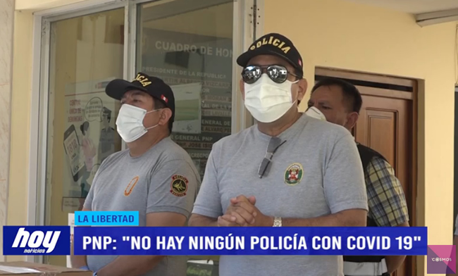 El jefe de la III Macro Región Policial de La Libertad, general Lucas Núñez, dijo que a la fecha no hay ningún policía infectado con coronavirus. Sin embargo, 4 efectivos fueron enviados a sus casas por tener síntomas de gripe.