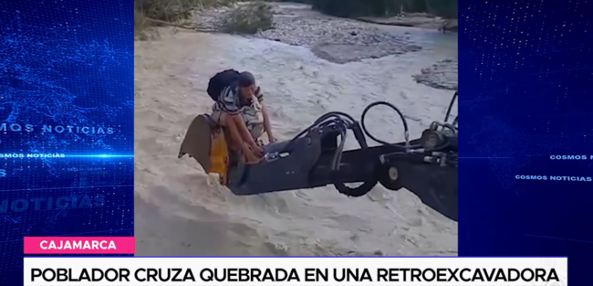 Tras lograr desplazarse hasta la otra orilla, el ciudadano, agradeció el buen gesto del conductor de la máquina de construcción. Esta quebrada se encuentra activada tras las fuertes y constantes lluvias que se vienen registrando en esta zona.