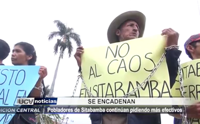 Y esta vez encadenados, un grupo de pobladores de Sitabamba solicitó nuevamente al general de la policía destinar más efectivos policiales a su comunidad, pata protegerlos de los mineros informales.
