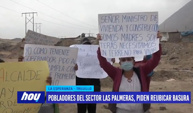 Pobladores del sector Las Palmeras de la parte alta de La Esperanza, piden al alcalde del distrito y gobernador regional resuelvan un delicado problema que tiene que ver con un terreno que se ha convertido en un foco infeccioso por la cantidad de basura que se almacena.