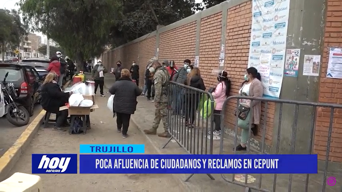 En el centro de estudios pre universitario Cepunt, se registró poca afluencia de ciudadanos en el proceso de vacunación para mayores de 33 años, esto durante la mañana, sin embargo, se dieron algunos reclamos.