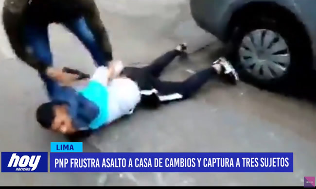 En un rápido accionar la Policía Nacional capturó a tres presuntos delincuentes que minutos antes intentaron asaltar una casa de cambios en el distrito de La Victoria.