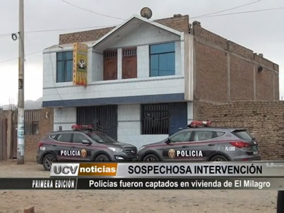 Reporteros de UCV Noticias captaron a personal de la Policía Nacional a bordo de dos patrulleros inteligentes realizando una extraña intervención en una vivienda del centro poblado El Milagro. Ante la presencia de nuestras cámaras, los efectivos policiales no supieron explicar el motivo de su intervención mientras que presunto afectado sostuvo que era extorsionado.
