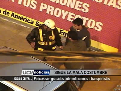 Dos policías fueron grabados por las cámaras de seguridad de Víctor Larco, en momentos en que cobraban coimas a transportistas. El coronel Róger Torres informó que ambos efectivos serán sancionados e investigados por Inspectoría.