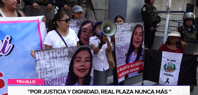 Familiares y amigos de Harumi Carbajal, una de las víctimas de la tragedia ocurrida el viernes 21 de febrero tras el colapso del techo del patio de comidas del centro comercial Real Plaza, exigieron justicia.