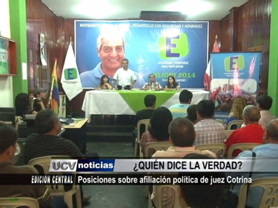 El movimiento político que lidera el coronel Elidio Espinoza, cuestionó la filiación política del juez Walter Cotrina, quien lleva el proceso judicial contra el mencionado ex policía. Sin embargo, el Partido Popular Cristiano emitió una constancia que niega toda relación política con el magistrado.