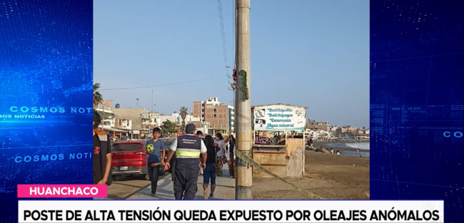 Los oleajes anómalos registrados en los últimos días han provocado un severo proceso de socavación en la playa de Huanchaco, exponiendo un poste de alta tensión ubicado en la vereda de la Av. Víctor Larco. La situación representa un grave peligro tanto para vecinos como para turistas que transitan por la zona.