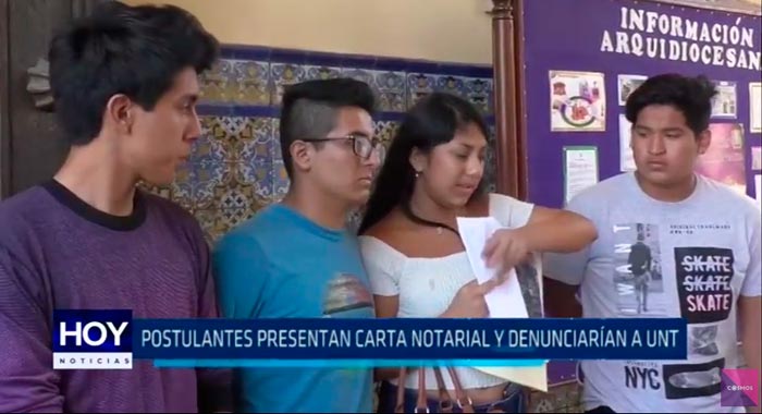Los postulantes a la UNT que aparecieron en la lista de ingresantes y después fueron separados, presentaron una carta notarial al rector para que atienda su caso, de lo contrario procederán a demanda judicial.