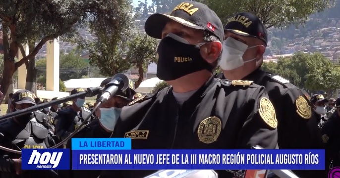 Así, a puerta cerrada a la prensa, en la División de Tránsito de la Pnp en el distrito de La Esperanza, fue presentado el nuevo general de la III Macro Región Policial de La Libertad Augusto Javier Ríos Tiravanti, designado en reemplazo de Jorge Luis Angulo Tejada.