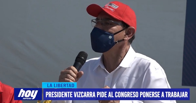De este modo el presidente Martín Vizcarra exhortó al congreso a trabajar por el país. Es mandatario se encontraba en la región de la libertad inspeccionando el terminal portuario y la villa EsSalud. Además de estar pendiente al tema de la vacancia que se venia debatiendo en el pleno, a la cual se llego a presentar por unos minutos. Para luego dar pase a su abogado, quien continuaría la defensa ante los casos que se le imputaba al mandatario.