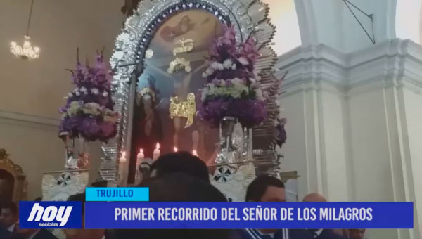 La imagen del Señor de Los Milagros salió en su primer recorrido procesional por las principales calles del centro histórico de Trujillo. Las actividades iniciaron con una misa en el templo de Santo Domingo de Guzmán.