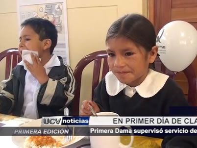 La Primera Dama de la Nación, Nadine Heredia, dio inicio al año escolar 2015 en un centro educativo de Otuzco. También, supervisó el servicio alimentario que ofrece Qali Warma.