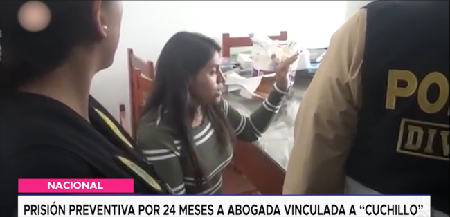 Según la Fiscalía, Pizán Chirado mantenía un estrecho vínculo con Miguel Rodríguez Díaz, alias “Cuchillo”, presunto líder de una red criminal dedicada a extorsión, minería ilegal y asesinatos en la provincia de Pataz. La abogada habría colaborado en el lavado de dinero y brindado soporte legal al grupo.