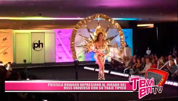La organización del Miss Perú determinó que para la prueba ‘Golden National Costume’, la modelo Prissila Howard luzca como una ‘guerrera del sol, dios de los incas’.