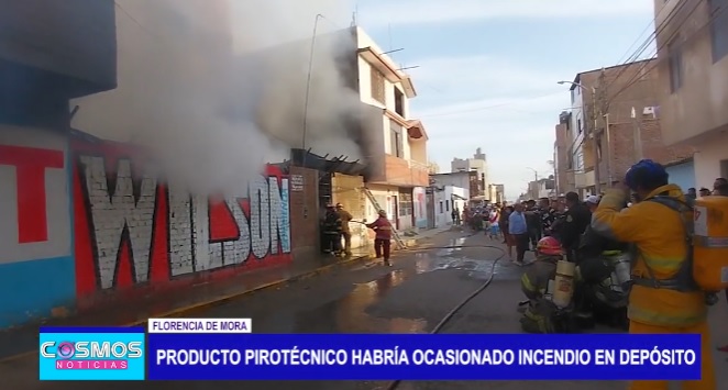 Este incendio registrado el primer día del año 2023 fue en la cuadra 8 de la calle 21 de octubre en el distrito trujillano de Florencia de Mora, en un pequeño almacén de productos alimenticios además de reciclaje y madera.