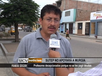 El SUTEP definitivamente no apoyará la re-reelección del actual presidente regional José Murgia. Así lo afirmaron sus principales dirigentes debido a que la autoridad no cumplió su promesa de devolver una deuda al Magisterio.