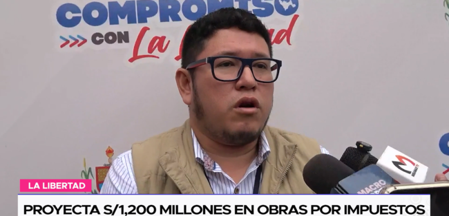 El gerente regional de Cooperación Técnica del Gobierno Regional de La Libertad, Julio Chumacero, anunció que La Libertad cerrará el 2025 con más de S/1,200 millones comprometidos en Obras por Impuestos. La región lidera este mecanismo que permite ejecutar proyectos con inversión privada.