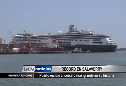 El puerto de Salaverry recibió por primera vez en su historia al navío más grande que haya podido atracar en el muelle del terminal portuario. Se trata de un crucero holandés con más de mil turistas a bordo.