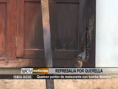 Delincuentes arrojaron una bomba Molotov contra el portón de un restaurante, situado en la avenida Nicolás de Piérola. La agraviada descarta que el hecho se trate de una extorsión y responsabiliza a un abogado y a una empresa constructora.