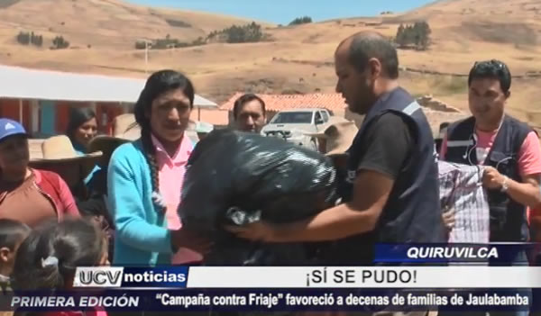 Decenas de familias del caserío de Jaulabamba en Quiruvilca, recibieron ropa y abrigo, tras campaña social contra el friaje emprendida por UCV Satelital.
