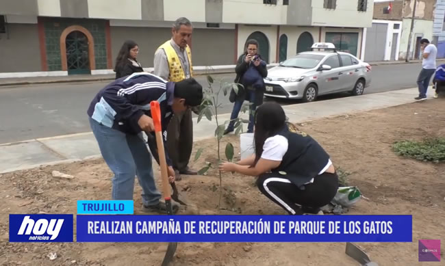 Trece jóvenes integrantes del Club Leo y Club de Leones Trujillo California, iniciaron una campaña de recuperación del parque conocido como de los gatos en la urbanización El Molino. En este lugar, no hay agua para regar este jardín, sin embargo están coordinando con los vecinos para que adopten un árbol cada uno.