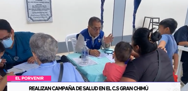La Gerencia Regional de Salud llevó a cabo una campaña de salud gratuita en el Puesto de Salud Gran Chimú, con el objetivo de brindar atención médica a la población y reforzar la lucha contra el dengue. La actividad contó con la presencia del gerente regional de Salud, Dr. Aníbal Morillo, quien supervisó las atenciones y la entrega de repelentes para prevenir la propagación de esta enfermedad.