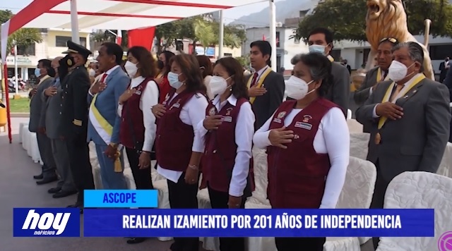 En la provincia de Ascope, se realizó el tradicional izamiento de Pabellón de Bandera Nacional por las fechas festivas conmemorativas a la Independencia del Perú con motivo de los 201 años del grito de libertad, los cuales fueron recordados en la plaza mayor de Ascope.