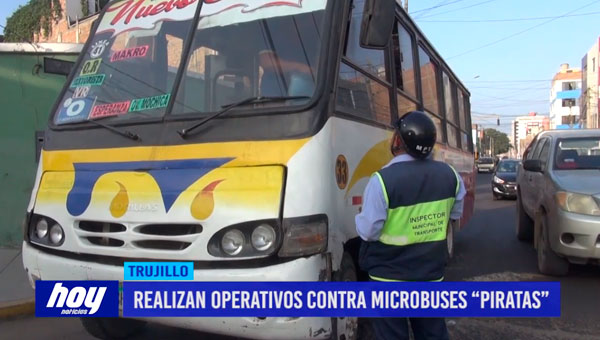 Esta mañana la Gerencia de Transportes de la Municipalidad de Trujillo y la policía intervinieron varios microbuses piratas de la empresa nuevo cortijo por no tener licencia.