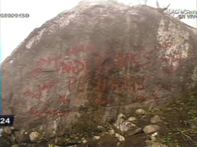 Pintas con aerosol dañan estructuras de cerro Campana. Nuestro reportero satelital envió fotografías. (Extracto del noticiero matutino).