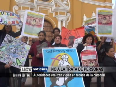 Autoridades y representantes de diferentes organizaciones realizaron una vigilia en el frontis de la iglesia Catedral, en contra de la trata de personas, delito cuyo número de víctimas viene creciendo considerablemente en los últimos años.