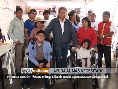 El candidato a la alcaldía de El Porvenir por el partido Alianza Para el Progreso, Víctor Rebaza, entregó dos sillas de ruedas a un joven y una niña con discapacidad.
