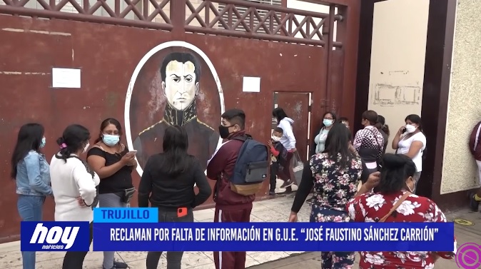 Padres de familia junto a sus hijos llegaron a la I.E José Faustino Sánchez Carrión para la apertura de clases presenciales y se dieron con la ingrata sorpresa que aún esta semana, las clases serán virtuales, por lo que se quejaron por la falta de información.