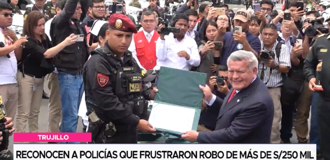 En honor a su valentía y arrojo para luchar contra la delincuencia, tres efectivos policiales de la unidad de los halcones recibieron un reconocimiento de su institución por la persecución a balazos y detención de dos “marcas”, logrando recuperar más de 250 mil soles que habían robado a un empresario.