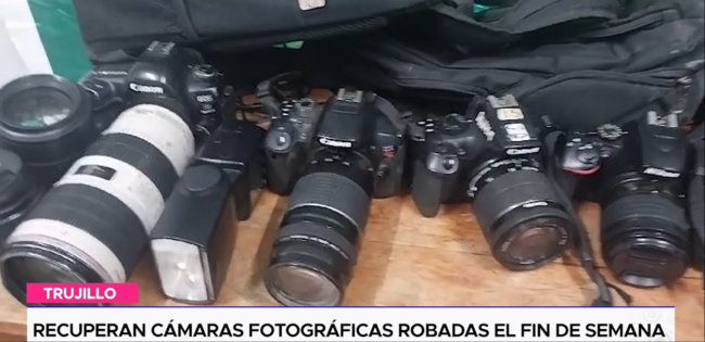 Equipos fotográficos profesionales fueron recuperados por la policía nacional en un descampado ubicado en el centro poblado El Trópico en el distrito de Huanchaco.