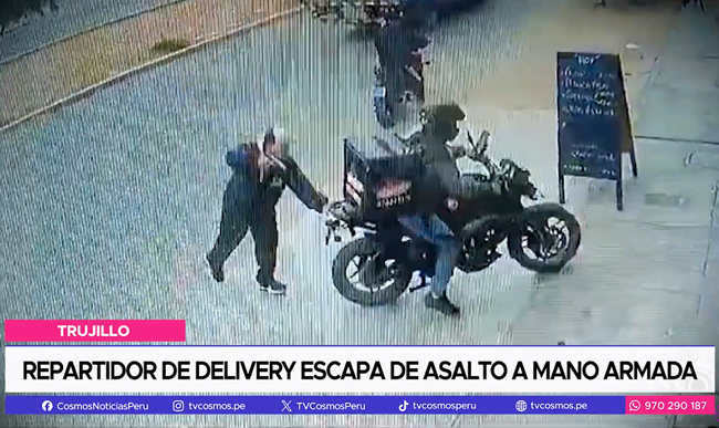 ¡Se llevó el susto de su vida! A este repartidor de delivery le apuntaron con un arma de fuego en la cabeza, pero una rápida maniobra ingresando a un restaurante lo salvó de ser víctima de la delincuencia.