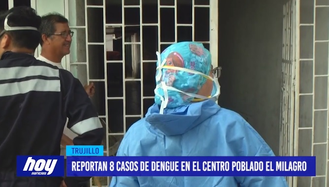 En el Centro Poblado El Milagro, distrito de huanchaco se han registrado ocho pacientes con dengue, uno de ellos, un menor de 9 años. Es por ello que se han reforzado las campañas de fumigación casa por casa del sector 2. La licenciada Kelly Vásquez indicó dos pacientes fueron hospitalizados.