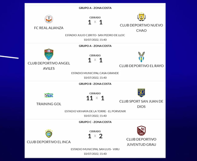 Resultados de la fecha 3 Copa Perú Etapa Departamental, Zona Costa – Departamento La Libertad.