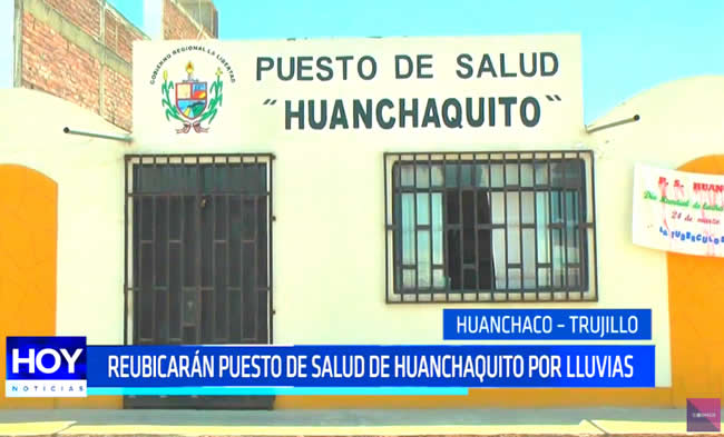 El puesto de Salud de Huanchaquito, ubicado en la parte baja de este centro poblado fue afectado por las recientes lluvias y ante los pronósticos que indican la persistencia de las precipitaciones, la institución será reubicada en uno de los ambientes de la municipalidad del concejo menor.
