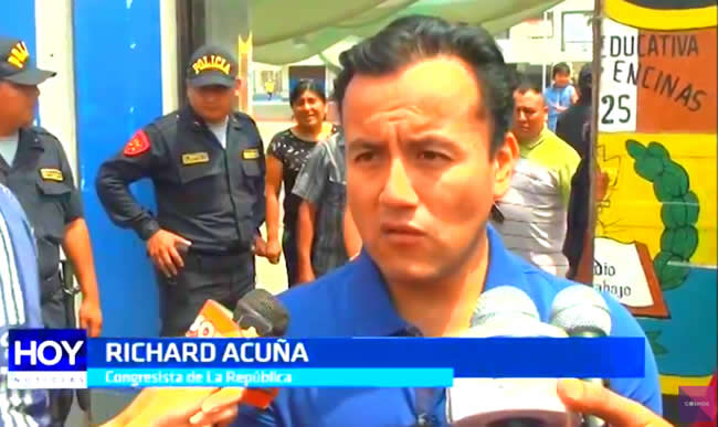 Era un tema coyuntural y tuvo que referirse a ello. El congresista Richard Acuña habló de la denuncia que involucra al presidente del Congreso Daniel Salaverry en torno a una presunta falsificación de firmas falsas presentada en su informe de representación.
