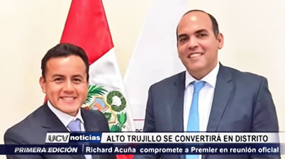 El congresista Richard Acuña logró comprometer al Premier Fernando Zavala con la elevación a la categoría de distrito del centro poblado menor Alto Trujillo. Proyecto de Ley tendrá que ser aprobado primero por el Congreso.