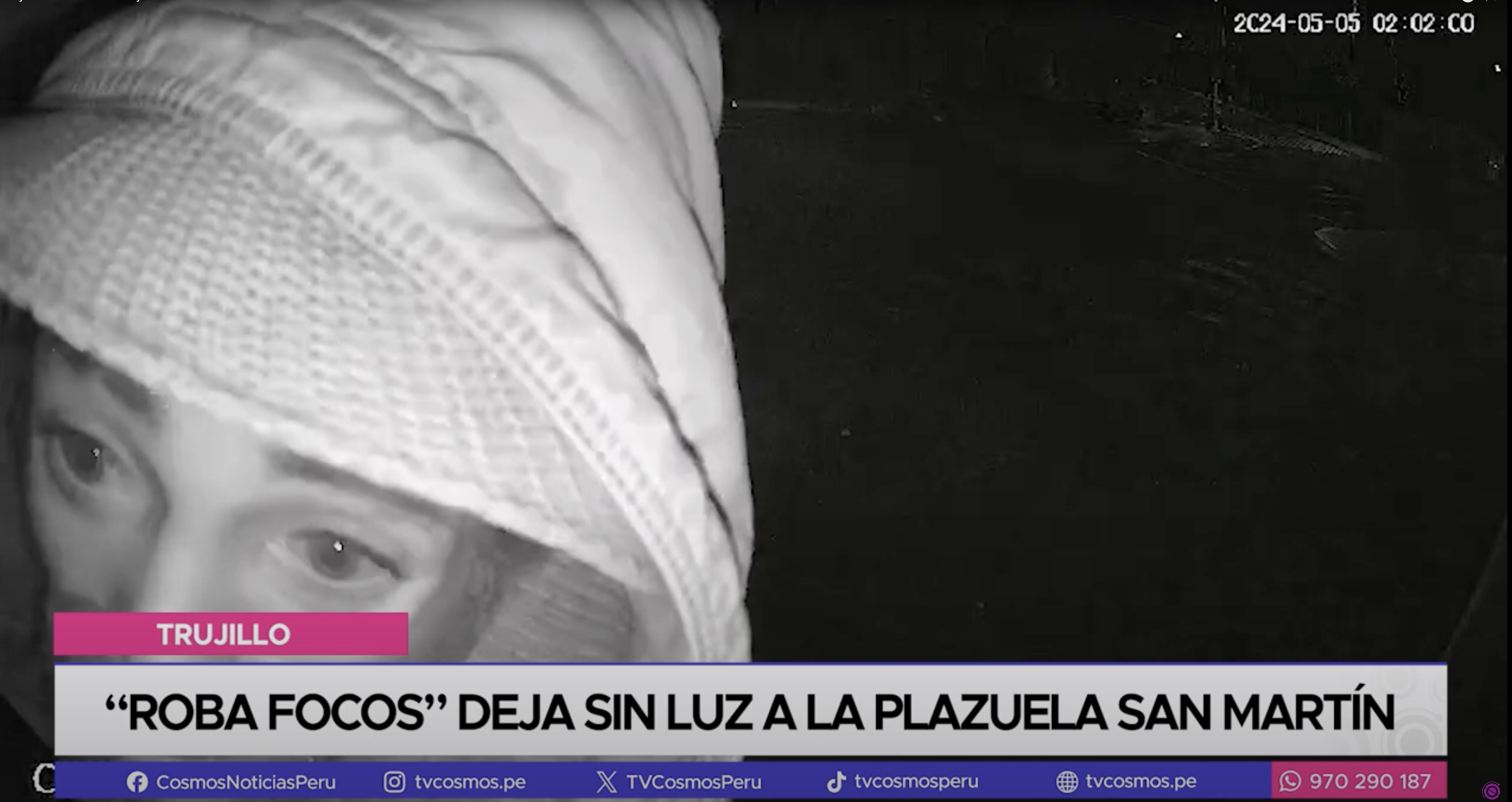 Este sujeto, que pareciera tomarse selfies desde estas cámaras de seguridad, es nada más y nada menos que un ladrón de focos, que desde hace meses viene realizando estas acciones vergonzosas. Su última ocurrencia, llevarse las luces led de la plazuela San Martín.