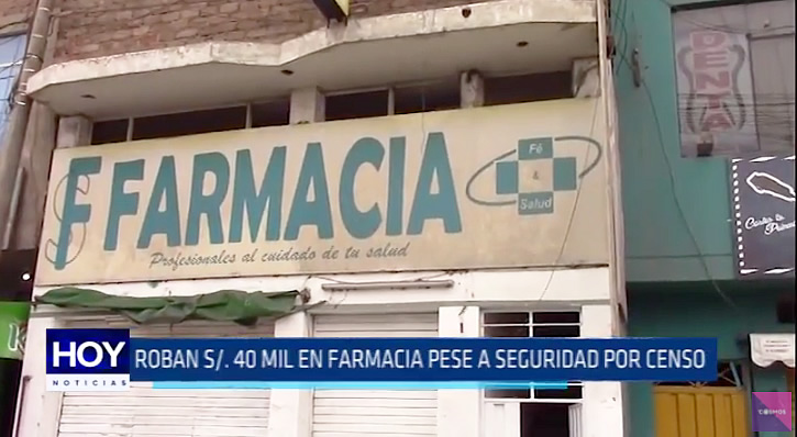 Delincuentes se llevaron costosas medicinas y dinero de una farmacia ubicada frente al mercado La Hermelinda. Atraco se produjo a pocas horas del censo nacional.